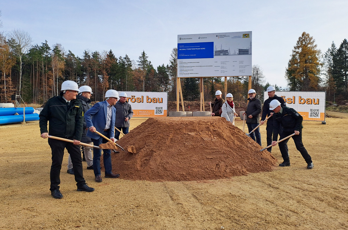 Neubau des Forstzentrums Nord bei Stegenthumbach. Dieses dient dem Bundesforstbetrieb als Betriebshof mit Dienstgebäude und befindet sich in nördlicher Randlage des Truppenübungsplatzes Grafenwöhr in unmittelbarer Nähe zur „Alten Revierförsterei Stegenthumbach“. Der Betriebshof besteht aus vier Gebäudegruppen mit unterschiedlichen Nutzungen. Die Gebäude werden in Hybridbauweise errichtet (Massivbau, Holzbau), die Dächer werden mit Photovoltaik belegt bzw. begrünt. Das Bauvorhaben orientiert sich an BNB-Nachhaltigkeitskriterien.